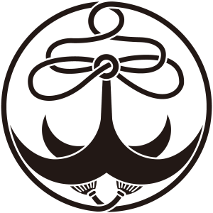 縄付き錨紋は、4本の爪を持つ1丁の錨に綱を通し、長く伸ばして外周を丸く囲う。