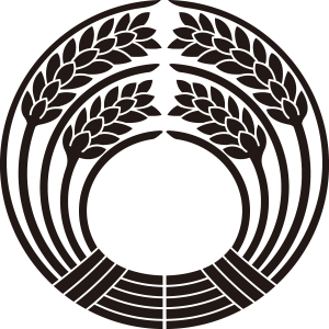 稲荷抱き稲紋は、2つの穂を持つ稲の束を左右から丸い形に抱き合わせて描く。