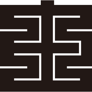 | 角字紋は文字紋の一種で、正方形の中に曲線を用いずに描かれる。文字紋は文字を紋章化したもので、家々で独自に設定され用いられることも多く、バラエティに飛んでいる。 |