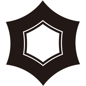 | 亀甲紋は亀の甲羅のような正六角形の連続紋四様から紋章化したもの。古代より世界中で使用された文様で日本には大陸から伝わり、5世紀以降の古墳からもその図柄が出土している。幾何学的な美しさと長寿の亀の甲羅を連想させる単純な形で瑞祥的な意義により家紋となった。 |