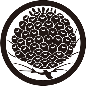 | 松紋とは、マツ科の針葉樹の高木である松の幹、枝、葉、及び松毬を紋章化した家紋。一年中青々とした葉をつける松は長寿の象徴とされ吉祥の瑞木として家紋として用いられた。また、苗字に因んで用いた氏も多い。松紋の形状、種類は極めて多いが、図案としては松を3段にした「三段階松」が多く使用されている。 |