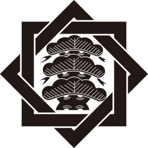 | 松紋とは、マツ科の針葉樹の高木である松の幹、枝、葉、及び松毬を紋章化した家紋。一年中青々とした葉をつける松は長寿の象徴とされ吉祥の瑞木として家紋として用いられた。また、苗字に因んで用いた氏も多い。松紋の形状、種類は極めて多いが、図案としては松を3段にした「三段階松」が多く使用されている。 |