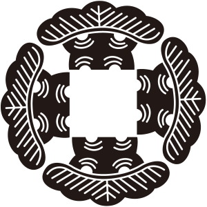 | 松紋とは、マツ科の針葉樹の高木である松の幹、枝、葉、及び松毬を紋章化した家紋。一年中青々とした葉をつける松は長寿の象徴とされ吉祥の瑞木として家紋として用いられた。また、苗字に因んで用いた氏も多い。松紋の形状、種類は極めて多いが、図案としては松を3段にした「三段階松」が多く使用されている。 |