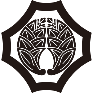 | 茗荷紋は、ショウガ科の多年草である茗荷をモチーフとした家紋。茗荷はその音が「冥加(みょうが)」に通じることから、縁起がいいとされた。冥加とは、神仏の守護のこと。このため神社や寺で茗荷紋が多く用いられている。 茗荷紋は『杏葉紋』と酷似しており混同されることが多い。もとは杏葉紋に縁起の良い茗荷を当てて使用したといわれる。 |