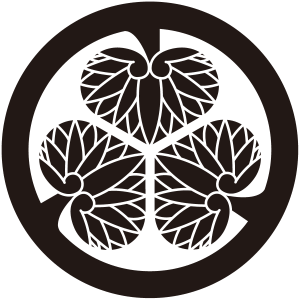 紀州葵紋は、3枚の葵の葉を頭合わせに並べて、通常の太さの丸で囲う。徳川御三家紀伊和歌山藩徳川氏の家紋。