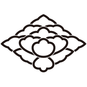 | 牡丹紋とは、キンポウゲ科の落葉灌木である牡丹の花を文様化した家紋。奈良時代に薬用、観賞用のため中国から伝わったものだが、中国では花の中の王「百花王」といわれ、富貴の象徴とされた。古くから衣服の文様としても用いられており、歴史的に著名な家紋だが、現在では使用家は少ない。摂関家である近衛家や鷹司家の家紋として知られており、そのつながりから伊達や津軽といった大名家でも用いられている。 |