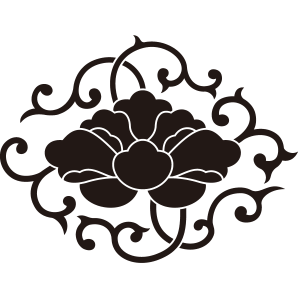 | 牡丹紋とは、キンポウゲ科の落葉灌木である牡丹の花を文様化した家紋。奈良時代に薬用、観賞用のため中国から伝わったものだが、中国では花の中の王「百花王」といわれ、富貴の象徴とされた。古くから衣服の文様としても用いられており、歴史的に著名な家紋だが、現在では使用家は少ない。摂関家である近衛家や鷹司家の家紋として知られており、そのつながりから伊達や津軽といった大名家でも用いられている。 |