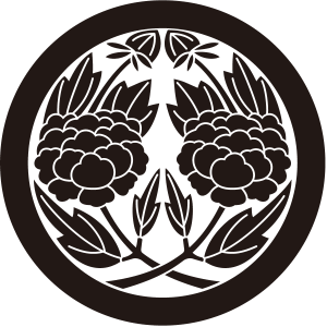 | 牡丹紋とは、キンポウゲ科の落葉灌木である牡丹の花を文様化した家紋。奈良時代に薬用、観賞用のため中国から伝わったものだが、中国では花の中の王「百花王」といわれ、富貴の象徴とされた。古くから衣服の文様としても用いられており、歴史的に著名な家紋だが、現在では使用家は少ない。摂関家である近衛家や鷹司家の家紋として知られており、そのつながりから伊達や津軽といった大名家でも用いられている。 |