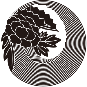 | 牡丹紋とは、キンポウゲ科の落葉灌木である牡丹の花を文様化した家紋。奈良時代に薬用、観賞用のため中国から伝わったものだが、中国では花の中の王「百花王」といわれ、富貴の象徴とされた。古くから衣服の文様としても用いられており、歴史的に著名な家紋だが、現在では使用家は少ない。摂関家である近衛家や鷹司家の家紋として知られており、そのつながりから伊達や津軽といった大名家でも用いられている。 |