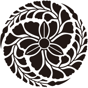 | 藤紋は、山野に自生するマメ科の蔓性落葉木本である藤の葉と花を紋章化した家紋。藤は寿命が長く、繁殖力が強いことでめでたい植物とされ、「万葉集」にも数多く詠まれて詠まれている。そのため、紋章としても好まれ、織物などにも盛んに描かれた。藤紋の使用家は、栄華を極めた藤原氏が圧倒的に多いが、その名声にあやかって藤紋を採用する家も増えたため、藤紋を使用しているからといって、必ずしも藤原氏族であるとは断定できない。 |