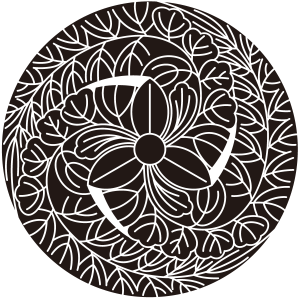 | 藤紋は、山野に自生するマメ科の蔓性落葉木本である藤の葉と花を紋章化した家紋。藤は寿命が長く、繁殖力が強いことでめでたい植物とされ、「万葉集」にも数多く詠まれて詠まれている。そのため、紋章としても好まれ、織物などにも盛んに描かれた。藤紋の使用家は、栄華を極めた藤原氏が圧倒的に多いが、その名声にあやかって藤紋を採用する家も増えたため、藤紋を使用しているからといって、必ずしも藤原氏族であるとは断定できない。 |
