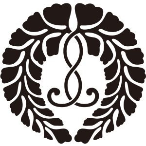 | 藤紋は、山野に自生するマメ科の蔓性落葉木本である藤の葉と花を紋章化した家紋。藤は寿命が長く、繁殖力が強いことでめでたい植物とされ、「万葉集」にも数多く詠まれて詠まれている。そのため、紋章としても好まれ、織物などにも盛んに描かれた。藤紋の使用家は、栄華を極めた藤原氏が圧倒的に多いが、その名声にあやかって藤紋を採用する家も増えたため、藤紋を使用しているからといって、必ずしも藤原氏族であるとは断定できない。 |