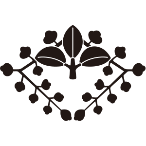 | 藤紋は、山野に自生するマメ科の蔓性落葉木本である藤の葉と花を紋章化した家紋。藤は寿命が長く、繁殖力が強いことでめでたい植物とされ、「万葉集」にも数多く詠まれて詠まれている。そのため、紋章としても好まれ、織物などにも盛んに描かれた。藤紋の使用家は、栄華を極めた藤原氏が圧倒的に多いが、その名声にあやかって藤紋を採用する家も増えたため、藤紋を使用しているからといって、必ずしも藤原氏族であるとは断定できない。 |