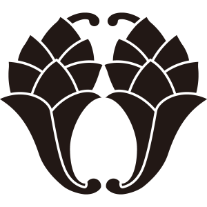 八つ葉抱き杏葉紋は、『抱き杏葉』を8つの葉を組み合わせて描く。