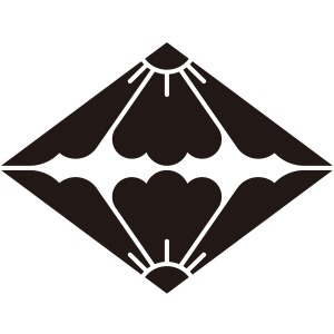 割り対い花菱紋は、2つに割った『花菱』を上下から対い合わせて菱形の形状に描く。