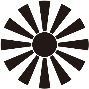 鍋島日足紋とは、中心の輪(りん)から12本の光芒を広げて描く。肥前蓮池藩鍋島氏の替紋。