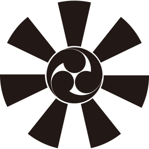 七つ日足に三つ巴紋とは、『七つ日足』の中心に『左三つ巴』を描く。