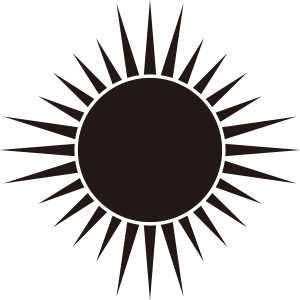 大村日足紋とは、中心の輪(りん)から28本の光芒を尖った形で広がるように描く。