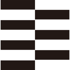 喰違い七つ引両紋は、左に4つの線と右に3つの線を食い違いに並べて描く。