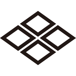 | 菱紋とは、古代より世界中で用いられた原初的な文様を元とした家紋。清和源氏義光流の代表的な家紋で武田家の家紋として有名。菱紋は四辺の長さがすべて同じ斜方形を基本とするが、角が直角のものは「石畳紋」と呼ばれ別の家紋となる。尚美的な意義で家紋となった。 |