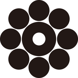 吉川九曜紋は、『蛇の目』の周りに8つの星を巡らせて『九曜』の形にする。周防岩国藩吉川氏の家紋。また山口県にある瑠璃光寺の寺紋。