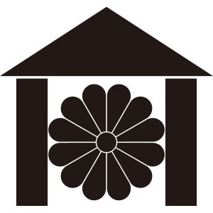 庵に十二葉菊紋は、三角形と2つの長方形で作った『庵紋』の中に『十二葉菊』を据えて描く。