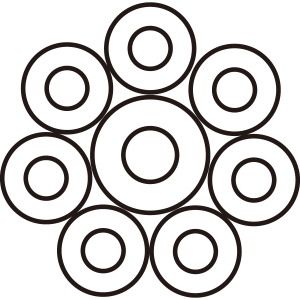 陰蛇の目八曜紋は、『蛇の目八曜』を輪郭のみの線で描く。