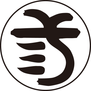 毛輪に三の字紋は、篆書のような形の「弎」の文字を、毛のように細い丸で囲う。