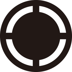 吊り鏡紋は、丸の中に上下左右から支えるように円形の鏡を描く。江戸幕府の幕臣、贄氏の家紋。