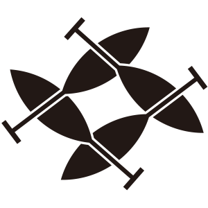 櫂井桁紋は、櫂紋の一種で、4本の櫂を、前後を追いかけるように配置して『井桁』の形に描く。「櫂井桁(かいいげた)」