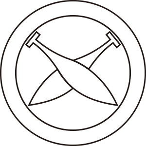 総陰丸に違い櫂紋は、櫂紋の一種で『丸に違い櫂』を輪郭線のみで描く。「総陰丸に違い櫂」