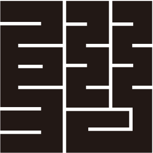| 角字紋は文字紋の一種で、正方形の中に曲線を用いずに描かれる。文字紋は文字を紋章化したもので、家々で独自に設定され用いられることも多く、バラエティに飛んでいる。 |