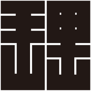 | 角字紋は文字紋の一種で、正方形の中に曲線を用いずに描かれる。文字紋は文字を紋章化したもので、家々で独自に設定され用いられることも多く、バラエティに飛んでいる。 |