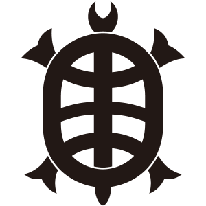 | 亀紋とは、蓬莱山にすむという霊亀を図案化した家紋。亀は古くから長寿を象徴する動物で、家紋として描かれる亀には長い毛と耳が生えているものが多く、紋章では蓑亀(ミノガメ)と呼んでいる。文様としても古くから用いられているが、家紋となったのは比較的に新しく、江戸時代以降が多い。長寿など瑞祥的な意義で用いられた。 |