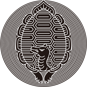 | 亀紋とは、蓬莱山にすむという霊亀を図案化した家紋。亀は古くから長寿を象徴する動物で、家紋として描かれる亀には長い毛と耳が生えているものが多く、紋章では蓑亀(ミノガメ)と呼んでいる。文様としても古くから用いられているが、家紋となったのは比較的に新しく、江戸時代以降が多い。長寿など瑞祥的な意義で用いられた。 |