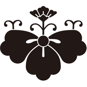 | 唐花紋とは、多種多様な花形の紋章の総称で、文様としての美しさから家紋となった。唐花は大陸伝来の古い文様でモチーフとなるような植物は実在しない。文様としては奈良時代にはすでに用いられており、正倉院の御物などにもみれる。 花弁の先端が3つの弧で描かれるのが特徴。唐花の花弁は3〜7弁からなるが、4弁のものは「花菱」「花角」として別に扱う。 |