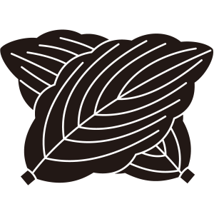 違い柏紋は、2枚の柏の葉を左右から斜めに互い違いに配して描く。