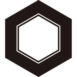 | 亀甲紋は亀の甲羅のような正六角形の連続紋四様から紋章化したもの。古代より世界中で使用された文様で日本には大陸から伝わり、5世紀以降の古墳からもその図柄が出土している。幾何学的な美しさと長寿の亀の甲羅を連想させる単純な形で瑞祥的な意義により家紋となった。 |