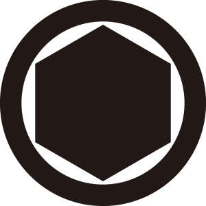 | 亀甲紋は亀の甲羅のような正六角形の連続紋四様から紋章化したもの。古代より世界中で使用された文様で日本には大陸から伝わり、5世紀以降の古墳からもその図柄が出土している。幾何学的な美しさと長寿の亀の甲羅を連想させる単純な形で瑞祥的な意義により家紋となった。 |