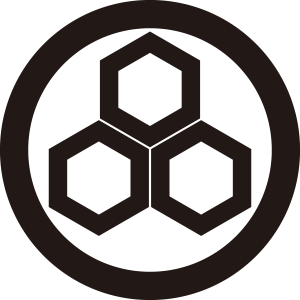 | 亀甲紋は亀の甲羅のような正六角形の連続紋四様から紋章化したもの。古代より世界中で使用された文様で日本には大陸から伝わり、5世紀以降の古墳からもその図柄が出土している。幾何学的な美しさと長寿の亀の甲羅を連想させる単純な形で瑞祥的な意義により家紋となった。 |