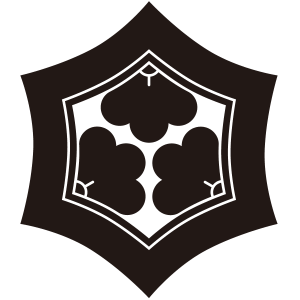 | 亀甲紋は亀の甲羅のような正六角形の連続紋四様から紋章化したもの。古代より世界中で使用された文様で日本には大陸から伝わり、5世紀以降の古墳からもその図柄が出土している。幾何学的な美しさと長寿の亀の甲羅を連想させる単純な形で瑞祥的な意義により家紋となった。 |