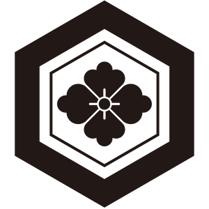 | 亀甲紋は亀の甲羅のような正六角形の連続紋四様から紋章化したもの。古代より世界中で使用された文様で日本には大陸から伝わり、5世紀以降の古墳からもその図柄が出土している。幾何学的な美しさと長寿の亀の甲羅を連想させる単純な形で瑞祥的な意義により家紋となった。 |