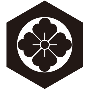 | 亀甲紋は亀の甲羅のような正六角形の連続紋四様から紋章化したもの。古代より世界中で使用された文様で日本には大陸から伝わり、5世紀以降の古墳からもその図柄が出土している。幾何学的な美しさと長寿の亀の甲羅を連想させる単純な形で瑞祥的な意義により家紋となった。 |