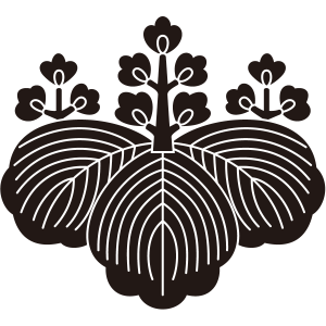 | 桐はアオギリ科の落葉広葉樹。鳳凰が住む嘉木とされる梧桐(あおぎり)に由来する家紋だが、デザイン的には別種の白桐が元となっている。もともと天皇家の紋章だが、功を挙げた臣下に賜与されることにより次第に広まっていった。梅、藤、木瓜、片喰とともに五大家紋の一つ。 |