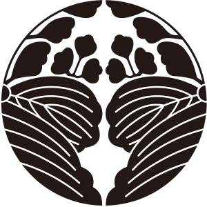 | 桐はアオギリ科の落葉広葉樹。鳳凰が住む嘉木とされる梧桐(あおぎり)に由来する家紋だが、デザイン的には別種の白桐が元となっている。もともと天皇家の紋章だが、功を挙げた臣下に賜与されることにより次第に広まっていった。梅、藤、木瓜、片喰とともに五大家紋の一つ。 |