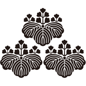 | 桐はアオギリ科の落葉広葉樹。鳳凰が住む嘉木とされる梧桐(あおぎり)に由来する家紋だが、デザイン的には別種の白桐が元となっている。もともと天皇家の紋章だが、功を挙げた臣下に賜与されることにより次第に広まっていった。梅、藤、木瓜、片喰とともに五大家紋の一つ。 |