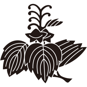 | 桐はアオギリ科の落葉広葉樹。鳳凰が住む嘉木とされる梧桐(あおぎり)に由来する家紋だが、デザイン的には別種の白桐が元となっている。もともと天皇家の紋章だが、功を挙げた臣下に賜与されることにより次第に広まっていった。梅、藤、木瓜、片喰とともに五大家紋の一つ。 |