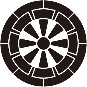 | 車紋は平安貴族が使用した御所車の車輪を文様としたもの。賞美的な意義により家紋となった。ちなみに、御所車の別名が源氏車である。日本で最も多い佐藤姓の家紋でもある。藤原氏秀郷流の佐藤氏の代表家紋。 |
