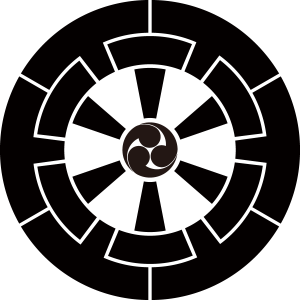 | 車紋は平安貴族が使用した御所車の車輪を文様としたもの。賞美的な意義により家紋となった。ちなみに、御所車の別名が源氏車である。日本で最も多い佐藤姓の家紋でもある。藤原氏秀郷流の佐藤氏の代表家紋。 |