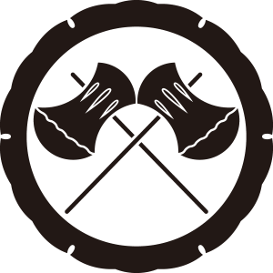 | 鉞は大型の斧のこと。鉞は古代中国の皇帝の権威の象徴であり、日本でも東国征伐に向かう日本武尊(ヤマトタケルノミコト)に天皇自ら鉞を授けたことが日本書紀に記されている。家紋としては尚武的な意義によるもの。 ちなみに鉞は魔除けとして表に三本、裏に四本の筋があり七つ目という。 |